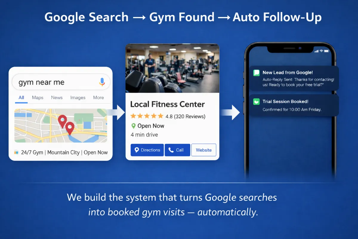 We turn Google searches into booked gym trials using Google Maps + automated follow-up.